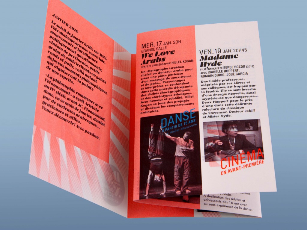 Couleurs et trames font le lien d’un document à l’autre. Ici le dépliant cinéma.